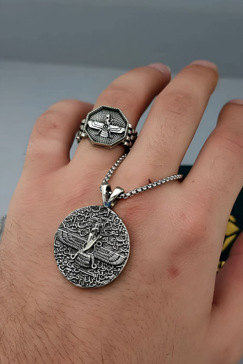 فروهر یکی از نمادهای باستانی ایران است که نمایانگر خرد، نیرو و تعادل روحی انسان است. این نماد ارتباط انسان با هستی، مسیر درست زندگی و قدرت درونی او را به یاد میآورد. ست گردنبند و انگشتر فروهر با طراحی هماهنگ، نه تنها هویت و اصالت ایرانی را به نمایش میگذارد، بلکه حس پیوند با تاریخ و باورهای کهن را در فرد زنده میکند.اگر این ست را با متریال نقره یا طلا میخواهید به پیج اینستاگرام ما پیام بدید یا تماس بگیرید 🙏